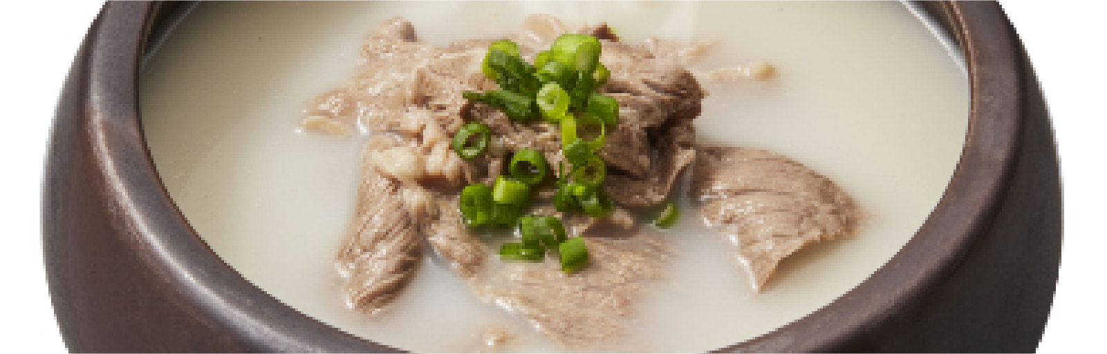 柔らかくなるまで煮込んだ牛バラ肉やトックなどを使用した本格的なコムタンスープとなっています。