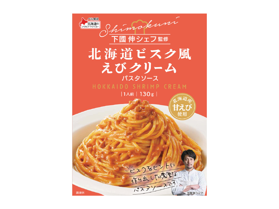 監修を務める下國伸シェフは北海道旭川市出身。有名フレンチレストラン「コートドール」で料理長を務め、若手シェフのコンテスト番組でグランプリを獲得するなど新進気鋭のシェフ。ビスクといえばフランス料理ですが、旨味を凝縮させるべく、コリアンテイストもプラスして複雑な味と香りを演出し、味わいに一層奥行きを生み出しました。素材の味を凝縮させたハイクオリティなパスタソースをぜひご家庭でもお楽しみください。
