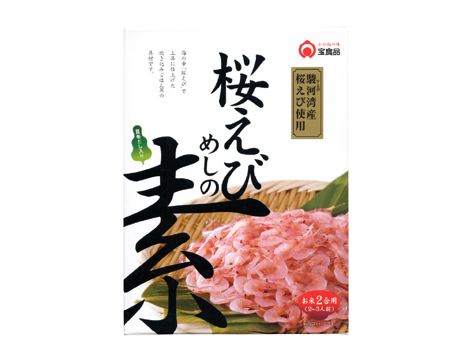 春の風物に例えらえる駿河湾産桜えびを使用した2合用釜めしの素です。添加物を使用せず、桜えび風味がき立たせ、