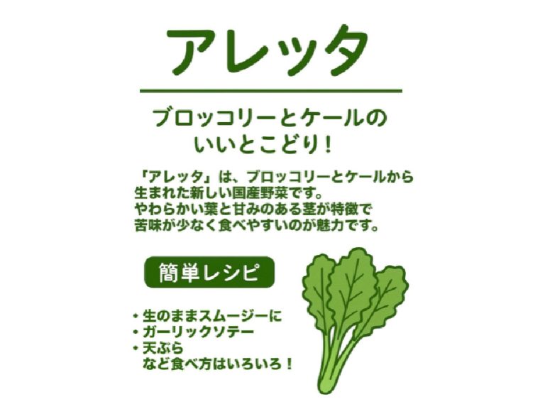 アレッタ ブロッコリーとケールのいいとこどりをした新しい国産野菜です。 -