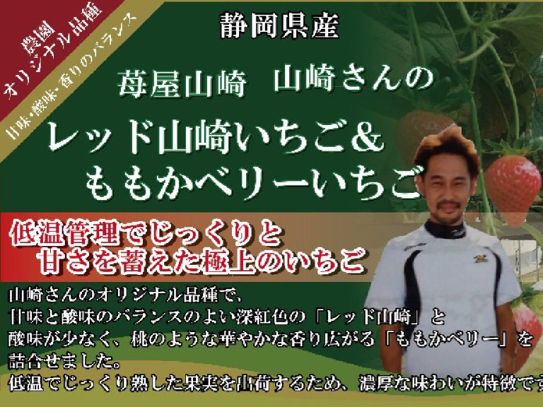 静岡県産 苺屋山崎 山崎さんのレッド山崎いちご&ももかベリーいちご 静岡県でこだわりのいちご栽培を行う、苺屋山崎の山崎さん。