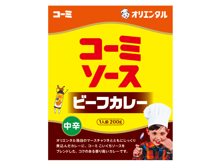 「コーミ×オリエンタル」こいくちソースとマースチャツネが絶妙にマッチしたフルーティーでコク深く”甘うまい味わい”のコラボカレー