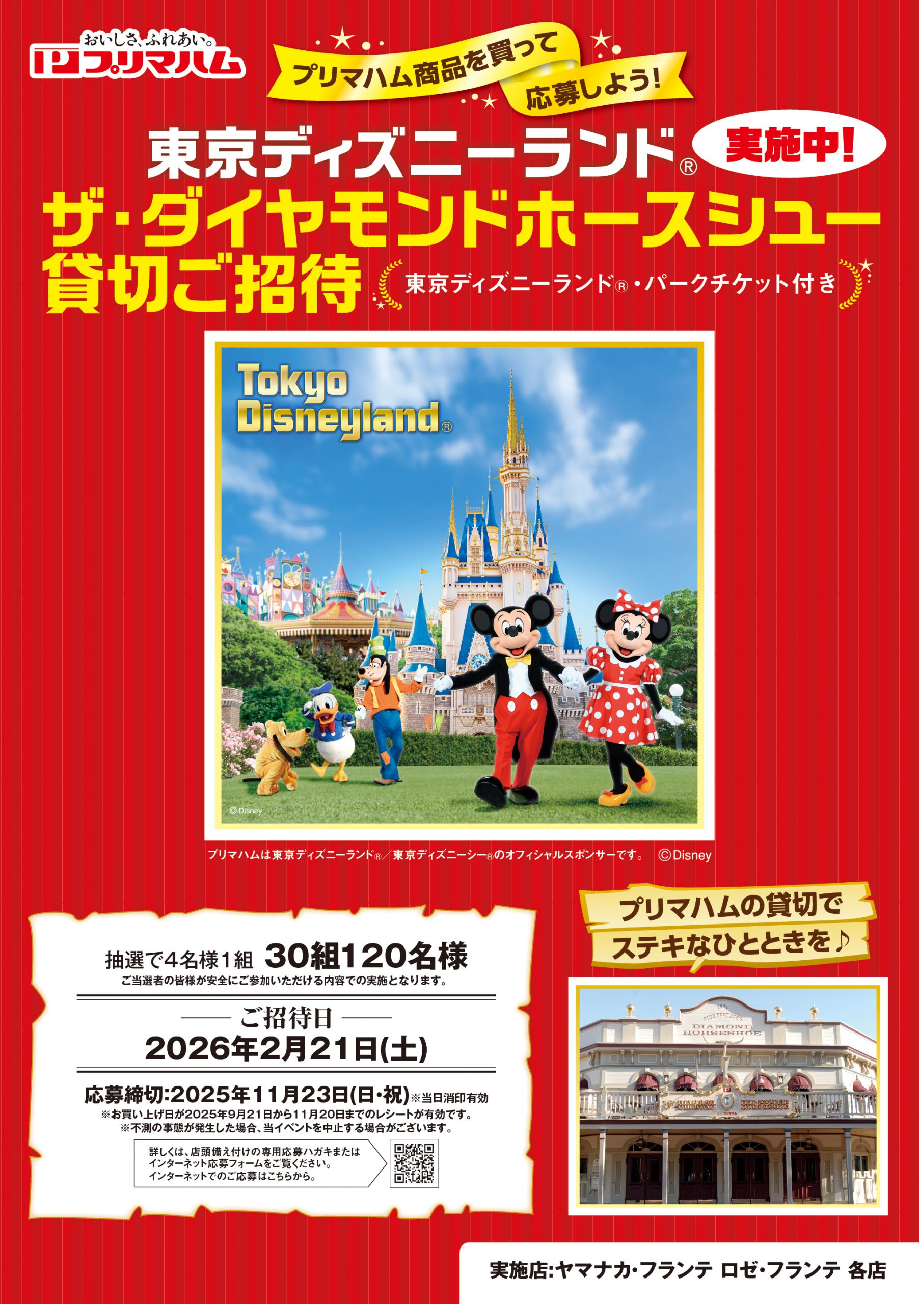 プリマハム 東京ディズニーランド ザ・ダイヤモンドホースシュー貸切ご招待キャンペーン