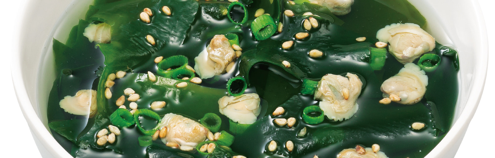 希少な島根県産の天然わかめと、しじみ、ごま、ねぎ入りの本格和風スープです。