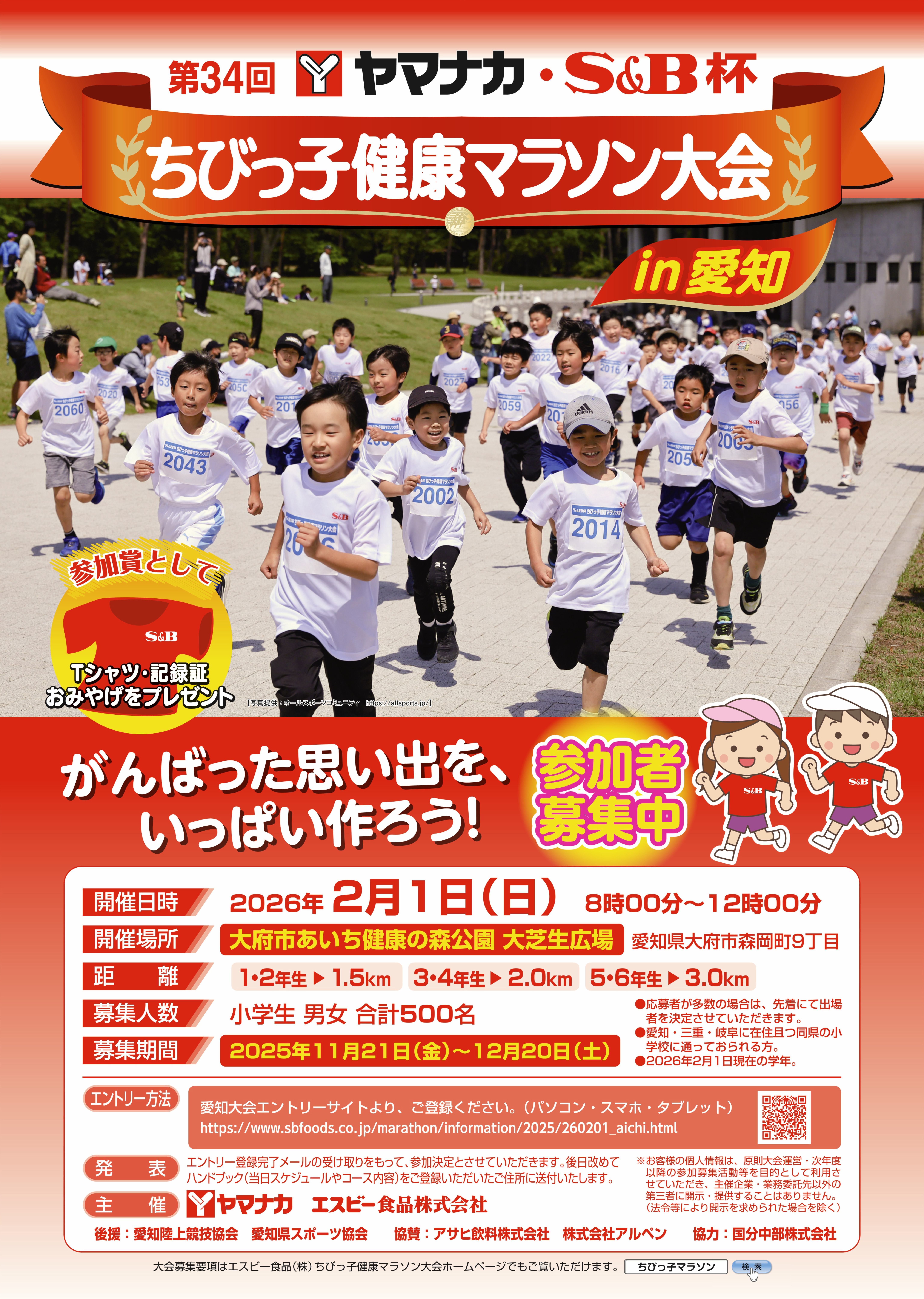第34回S&B杯 ちびっ子健康マラソン大会 参加者募集中!