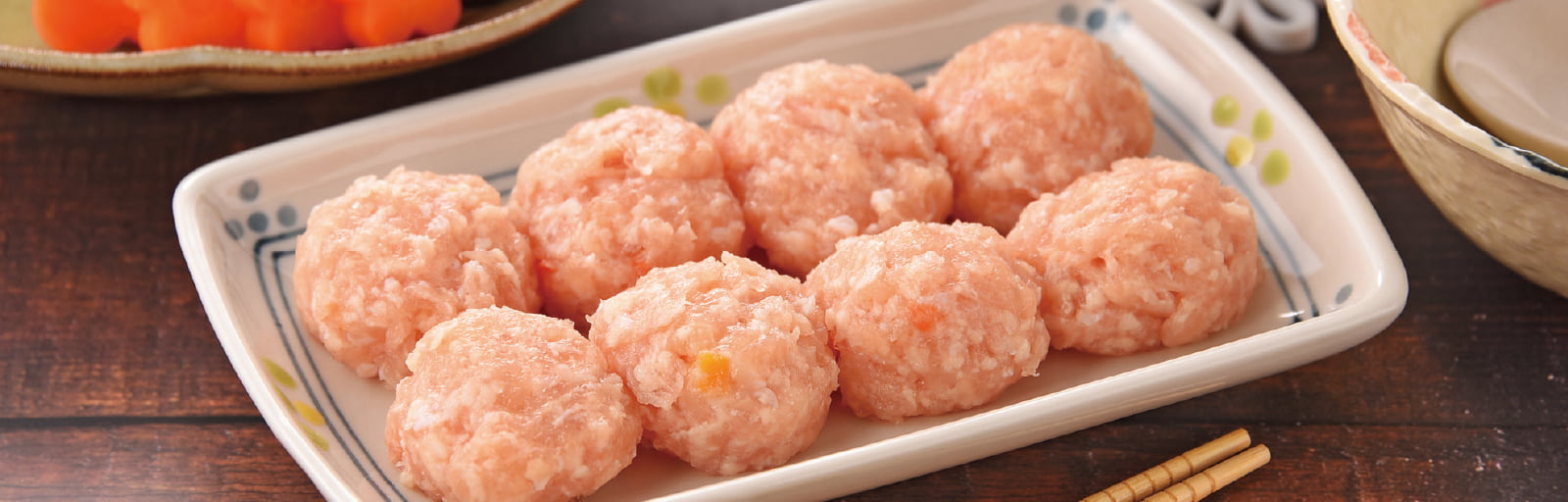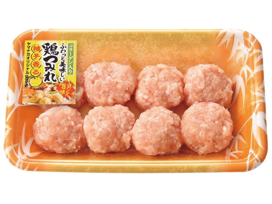 爽やかなゆずの香りと上品な白だしの旨味たっぷりの鶏つみれです。ふわっと食感のヤマナカオリジナルの鶏つみれを是非ご賞味ください。