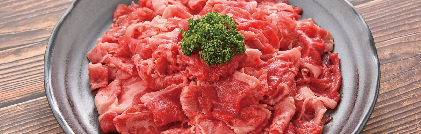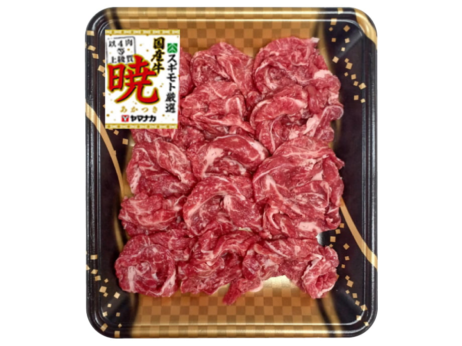 お肉の専門店スギモトが厳選した肉質4等級以上のヤマナカオリジナルブランド牛~暁~のきりおとしです。