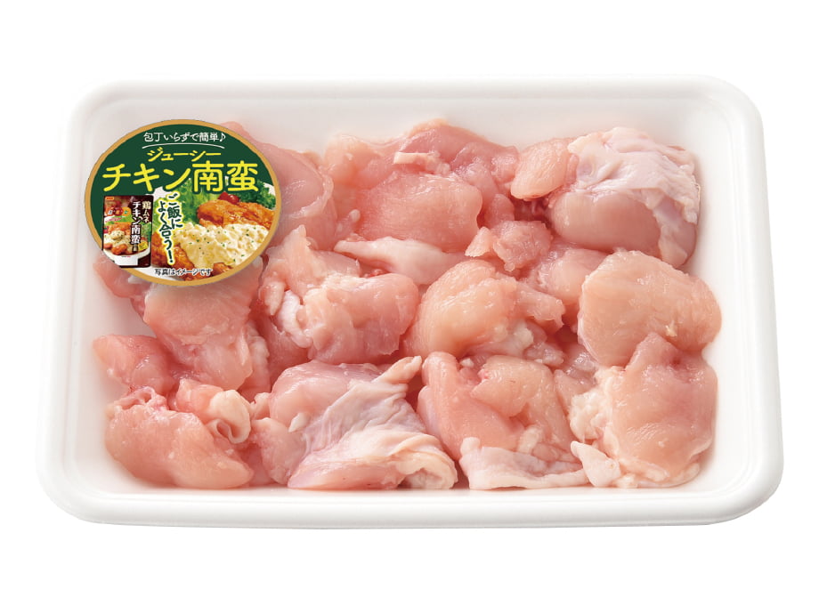 手羽元とムネ肉の間にある肩肉は一羽から少量しか取れない希少部位です。むね肉よりもジューシーで、もも肉より脂身が少なくあっさりしており、鍋物や唐揚げ、チキン南蛮に最適です。