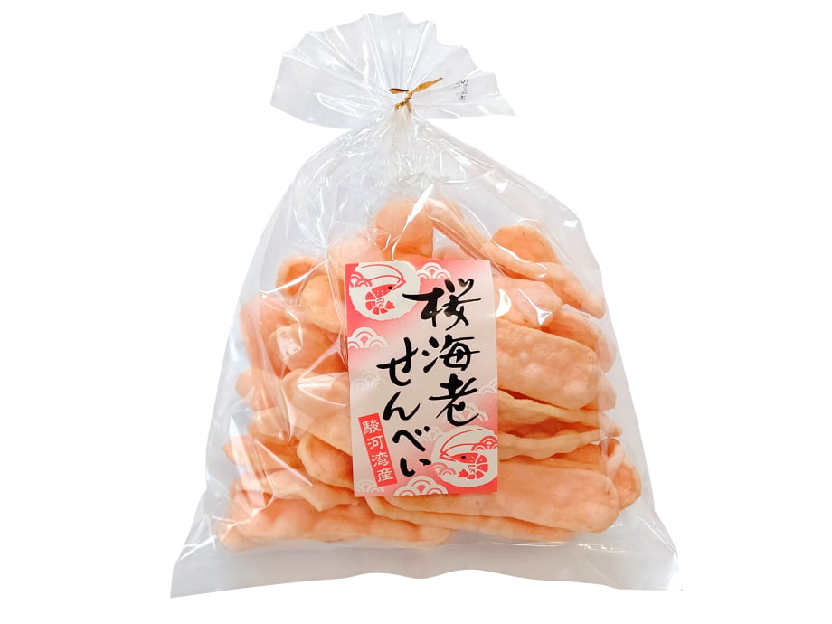 化学調味料不使用の厳選された原材料に、駿河湾産の桜海老をふんだんに練り込み、かつおと昆布の旨みが効いた秘伝の醤油を染み込ませ、職人がこだわり続けたお煎餅です。香ばしくこんがりふっくらと焼き上げられています。ノンフライでふわふわ食感がくせになる味わいです。