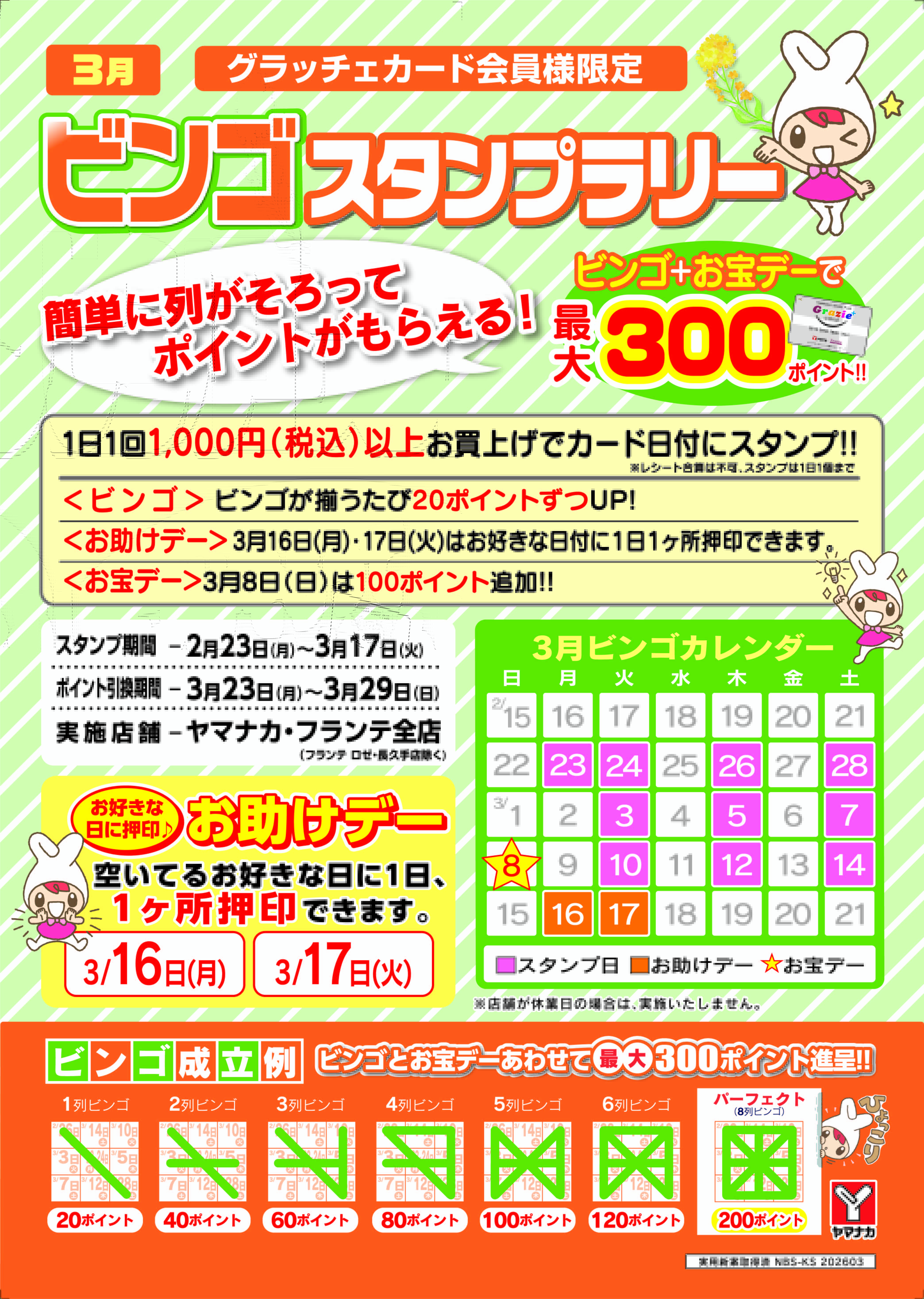 ビンゴとお宝デーで最大300ポイントプレゼント★