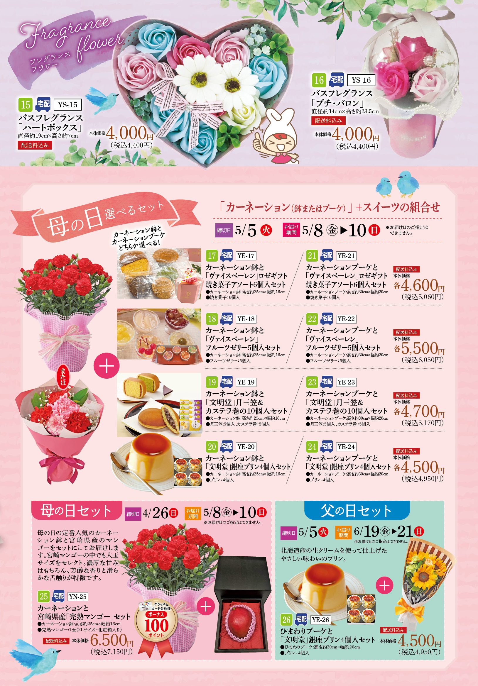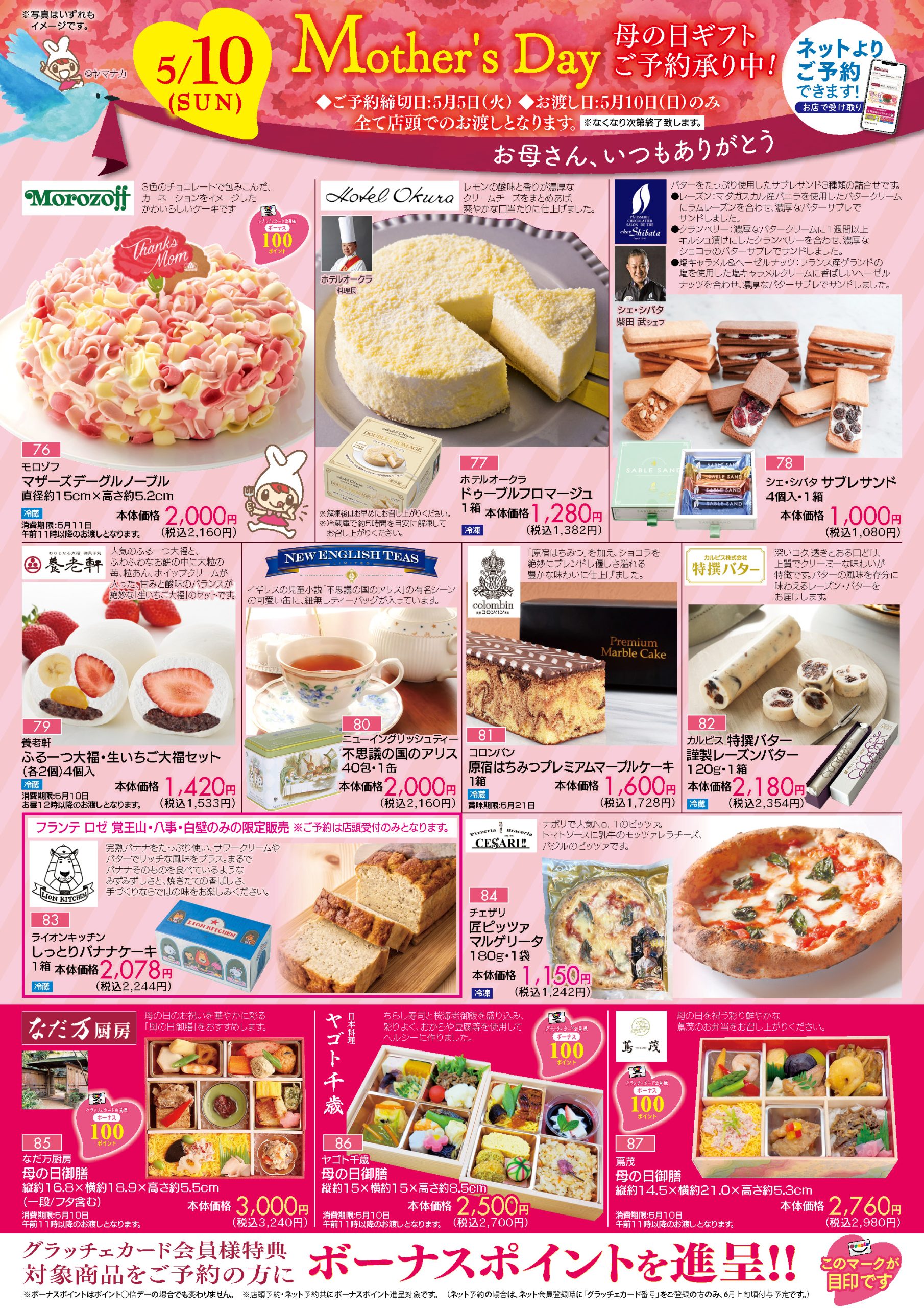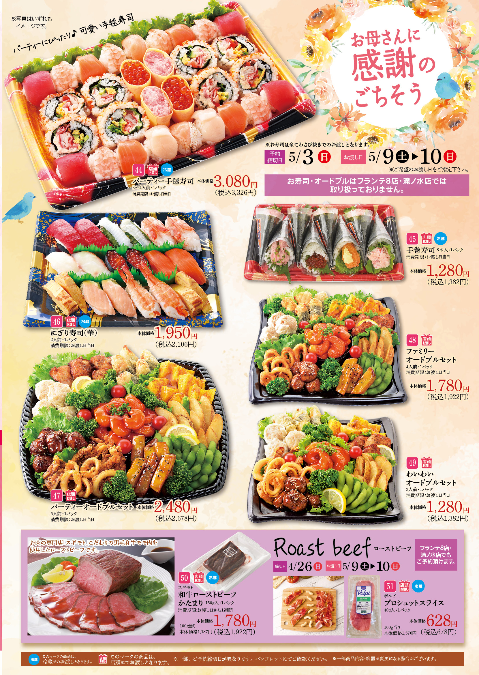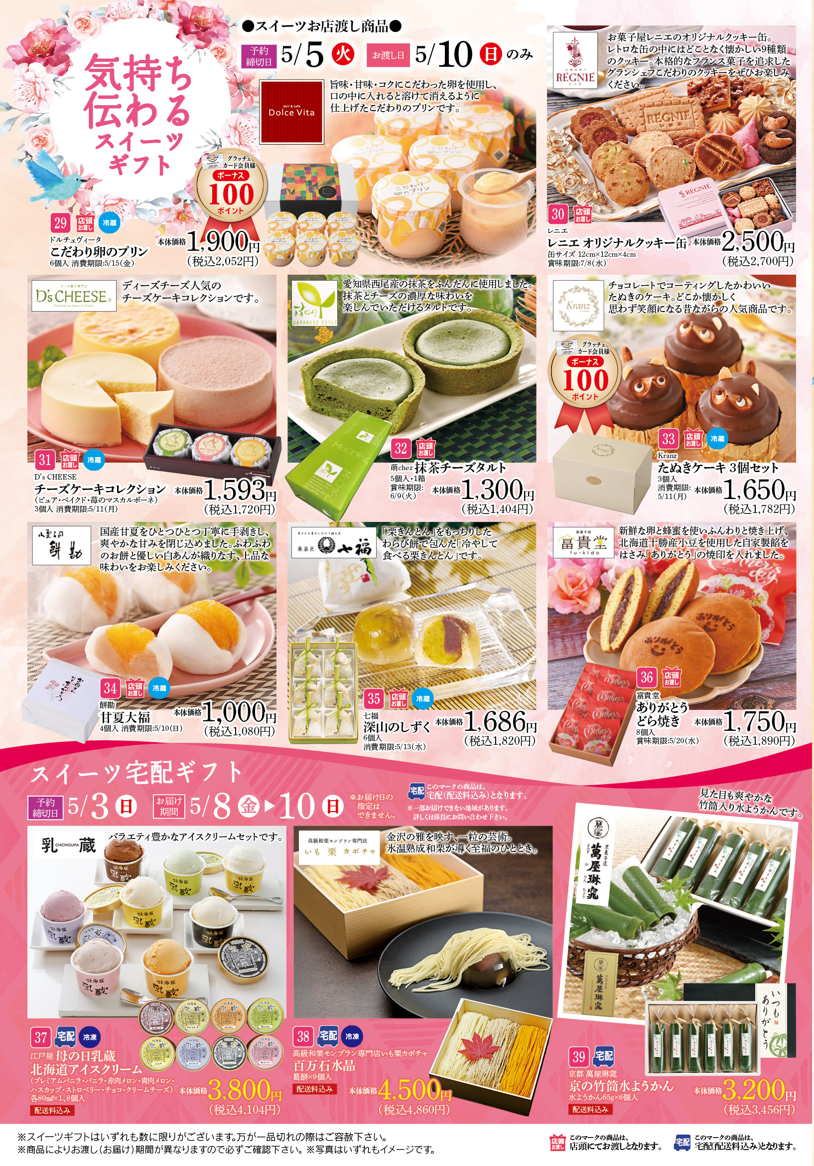 - ※予約締切日・お渡し日は商品によって異なります。パンフレットにてご確認下さい。