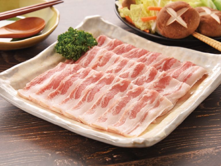 三元豚の豚バラ肉を”皮付き”でご奉仕!豚バラ肉の皮部分にはコラーゲンが豊富に含まれています。鍋物や炒め物に最適なお肉です。 -