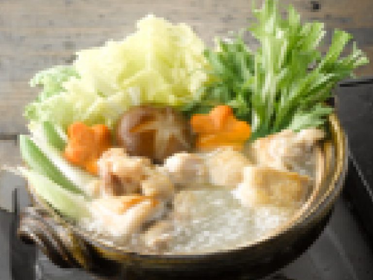 名古屋コーチンの鶏だしの旨味と素材の味を引き立てる塩ベースのつゆで、鶏肉をおいしくお召し上がり頂けるよう仕上げました。 -