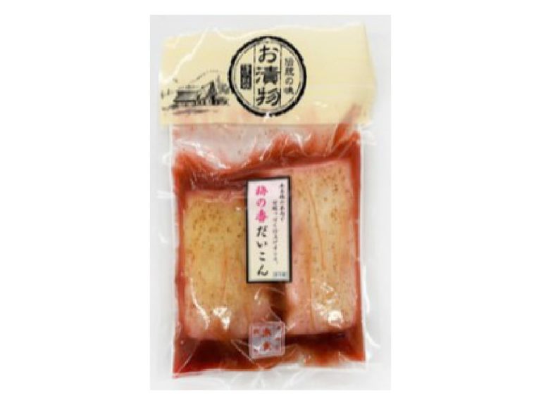 大根を砂糖で絞り、南高梅の梅肉で漬け込んだ梅の爽やかな香りのする沢庵です。 -