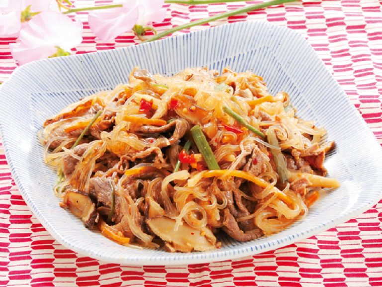 三種の醤(ジャン)にりんご・洋ナシ果汁のコクと旨味、”コラーゲンペプチド”を加えたオリジナルだれを使用。春雨も入ったボリュームたっぷりのプルコギです。 -